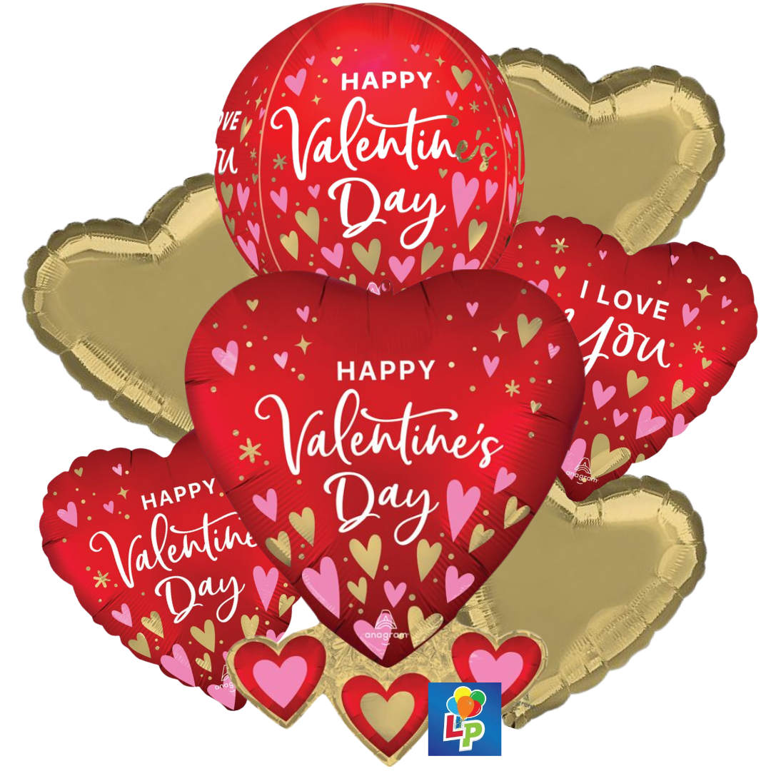 Celebrate love with this exquisite Valentine's Day balloon bouquet, thoughtfully designed with premium materials and expert craftsmanship. The DELUXE collection comprises one(1) oversized themed mylar balloon complemented by five (5) 18-inch mylars in coordinating shapes and designs, and a matching theme Orbz Balloon delivering visual impact and sophistication.